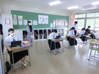 8年生と6年生が珠洲市内の学校とオンラインで授業を行いました。協働的な学習の充実のため、多様な意見や考え方に触れる機会としてオンラインでの学習を行っています。今日は、社会科・道徳・総合的な学習の時間で行いました。児童生徒の考えを深めることができました。