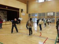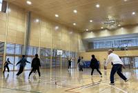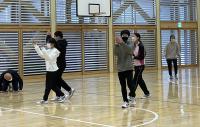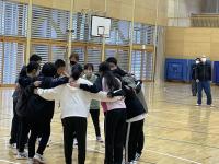 PTA総括委員会の企画で、後期課程親子ドッジボール大会が開催されました。王様をばれないように決めて、王様を守り抜いたチームが勝つというルールで楽しみました。果敢にボールに挑んだり、歓声を上げて逃げ回ったりしながら、体育館には笑い声が響いた2時間でした。まさにPTAスローガン「DOKIDOKI WAKUWAKU NIKONIKO」のひと時でした。お世話していただいた皆様、本当にありがとうございました。お疲れ様でした。明日、筋肉痛になられませんように。