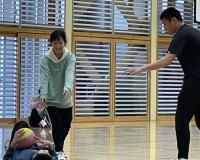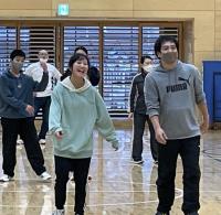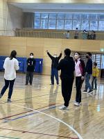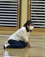 縄跳び集会を行いました。避難所となっている体育館にスペースを作っていただき、皆さんに見守られながらの集会となりました。地域のS平さんは、T谷さんに散髪してもらいながら子どもたちの縄跳びを観戦してくださいました。なかなか見られないシチェーションで、今しか出会えない光景も楽しみました。ボランティアの方々や金沢から来てくださった養護教諭のÝ先生も参加してくださり、みんなで楽しみました。八の字跳びに混ぜてもらったところ、美冬さんがそっと背中を押して入るタイミングを教えてくれました。やさしさがありがたかったです。