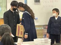 今日は、三崎中学校と交流学習を行いました。国語の授業では、ペア学習をしたり、机を合わせて4人で話し合ったりして、協働して学ぶことで、自分の考えを深めていました。また、総合的な学習の時間では、大谷チャームの制作を一緒に行いました。三崎中学校の生徒のみなさんに作り方やコツを教えることで、自然と会話が弾んでいました。