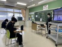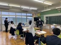 8年生と6年生が珠洲市内の学校とオンラインで授業を行いました。協働的な学習の充実のため、多様な意見や考え方に触れる機会としてオンラインでの学習を行っています。今日は、社会科・道徳・総合的な学習の時間で行いました。児童生徒の考えを深めることができました。