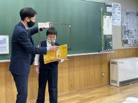 6年生のしょうまさんが海上保安庁・海の絵コンクールで入賞し、コンセールのとの表彰式に参加しました。チャレンジすることで得た入賞です。おめでとうございます。