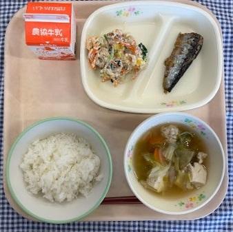 今日の給食献立は、白ごはん・いわしのみぞれ煮・白和え・けんちん汁・牛乳でした。
