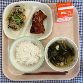 今日の給食献立は、白ごはん・ヤンニョムチキン・三食ナムル・わかめスープ・牛乳でした。