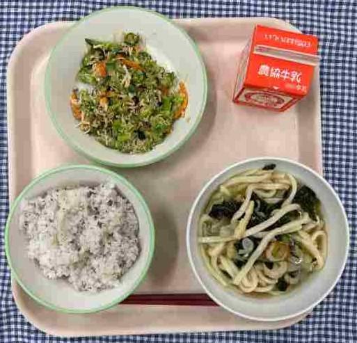「五目うどん、美味しいよね。」配膳をしながら前期課程の児童が嬉しそうに話していました。よかったですね。
