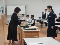 毎週火曜日に、美術を教えに来てくださっていた正木先生が、退職の年を迎えられ、今年度最後の授業を行ってくださいました。8年生が感謝の思いを伝え、子どもたちで用意した花束をお渡ししました。これまで美術の授業ばかりでなく、子どもたちのために熱心に様々なサポートをしていただきました。いつも温かくご指導いただき、本当にありがとうございました。