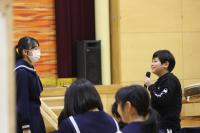 卒業式に向けて、8年生がリーダーとなって、後輩の指導をしています。全体に指示を出して、動かし、感想や改善点を伝えるなど、リーダーとしての風格が出てきました。いいコンビのふたりです。