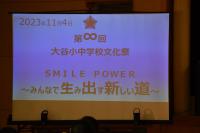 文化祭スローガン「SMILE POWER ~みんなで生み出す新しい道 ~」にぴったりの感動の文化祭を行うことができました。子どもたちが自分たちで考え、判断し、行動して創り上げた文化祭でした。一人一人が自分の枠を超えて輝く姿、ハプニングも臨機応変に乗り越え笑顔で楽しむ姿、時に歯を食いしばり力を出し切ろうとする姿、自分の役割を自覚し、お互いを大切にしてに活躍する姿など、本当に素晴らしかったです。そして、人は楽しむと、自分の言葉で表現し始めることも証明された文化祭でした。恒例の感想発表でも沢山の思いを聞くことができました。大谷の子供たちの姿を誇りに思います。感無量の一日となりました。ご来場の来賓の皆様、保護者・地域の皆様に温かく見守っていただきましたことに心より感謝申し上げます。午前の部、開会式からよさこいまでの写真をご紹介いたします。