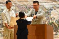 全国読書感想画コンクールにおいて入選した結果が評価されて、ひろとさんが珠洲市少年文化賞を受賞しました。市民図書館で表彰式が行われ、しっかりとしとした返事で受賞しました。卒業生のけんたろうさんは、珠洲市スポーツ賞を受賞しました。大谷の子どもたちががんばっています。おめでとうございます。
