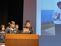 ラポルトすずで市内小中学生が集まっての発表会が開催されました。午前中は、3・4年生の生き物観察会の報告がありました。春と秋に田んぼと川の生き物を観察し、その変化から考えられることを発表しました。はっきりとした声で、堂々と報告しました。午後からは5・6年生が「珠洲の空き家」をテーマに、インタビューやデータからわかったことを整理して、わかりやすく報告できていました。7・8・9年生は、「大谷地区を未来に残すために」をテーマに、ゴール11「住み続けられる街づくり」について発表しました。7年生は、祭りで大谷を元気にすることについて、8年生は地域や学校の良さがつまった校歌を動画で紹介することについて、9年生は学校紹介リーフレットの作成と珠洲の第一次産業を成功に導くことについて発表しました。子どもたち自身が発表を楽しんでおり、自分たちの思いをのびのびと表現していた姿はとても素晴らしかったです。聴衆を引きもむプレゼンができていました。らいきさんとひなさんは、「今回でSDGs発表会を卒業します。楽しかったです。受験がんばります。さようなら~」とさわやかにしめくくり、大谷の子どもたちの底力が発揮されていました。ケーブルテレビで紹介されます。ぜひご覧ください。
