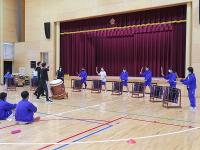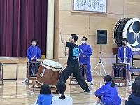 和太鼓芸能集団『鼓動』の皆様がご来校されました。3限目に4年生から9年生が一緒に練習を行いました。指示を一度で聞き取り、リズムを聞き取り、練習する姿は真剣そのものでした。午後からの公演会では、迫力ある演奏、コミカルな動き、「木漏れ日」と題した世界の太鼓が奏でる柔らかな響きなど、多様な太鼓の魅力に触れることができました。鍛え抜かれた技術の持つ確かさや所作の美しさについても地域の方々と楽しむことができた時間でした。講演会の最後には、子どもたちも一緒に演奏に加わることができて大満足の様子でした。感想発表では、「文化祭で、地域の伝統の太鼓を演奏するので、みなさんのように笑顔で演奏したいなと思います」と伝える姿も立派でした。鼓動の皆様、地域の皆様、ご来校ありがとうございました。