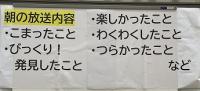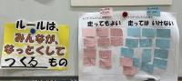 避難所で生活している子どもたちは、学校で過ごす時間も含め、24時間仲間と生活を共にしています。楽しいそうです。なぜなら一緒に遊ぶ時間が増えたからとのことです。確かに、ボランティアのお兄さんたちとおにごっこやかくれんぼをしています。外でも遊んでもらっています。夕食前の6時ごろ、子どもたちは、走ってはいけない廊下を笑顔で思い切り走り、しかられたりもしています。そんな中で、よりよい生活をめざして、避難所生活3か条をつくり、集会で披露してくれました。自治の力をつけていくきっかけとなりそうです。考え、行動し、呼びかける姿が大切です。