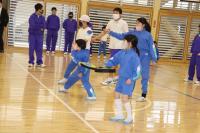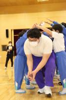 縄跳び集会を行いました。避難所となっている体育館にスペースを作っていただき、皆さんに見守られながらの集会となりました。地域のS平さんは、T谷さんに散髪してもらいながら子どもたちの縄跳びを観戦してくださいました。なかなか見られないシチェーションで、今しか出会えない光景も楽しみました。ボランティアの方々や金沢から来てくださった養護教諭のÝ先生も参加してくださり、みんなで楽しみました。八の字跳びに混ぜてもらったところ、美冬さんがそっと背中を押して入るタイミングを教えてくれました。やさしさがありがたかったです。