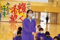 読書量の豊かな児童生徒の表彰のために、大谷子どもを育てる会・会長の丸山様と公民館主事・南様がご来校くださいました。学校全体として読書量の多かったみふゆさん、ひなさんが表彰され、「本を読むと心が落ち着きます。これからもたくさん本の世界に触れたいです。」とお礼の挨拶を行いました。学年ごとの表彰も行われ、副賞に図書券を頂きました。いつも子どもたちのために、ありがとうございます。