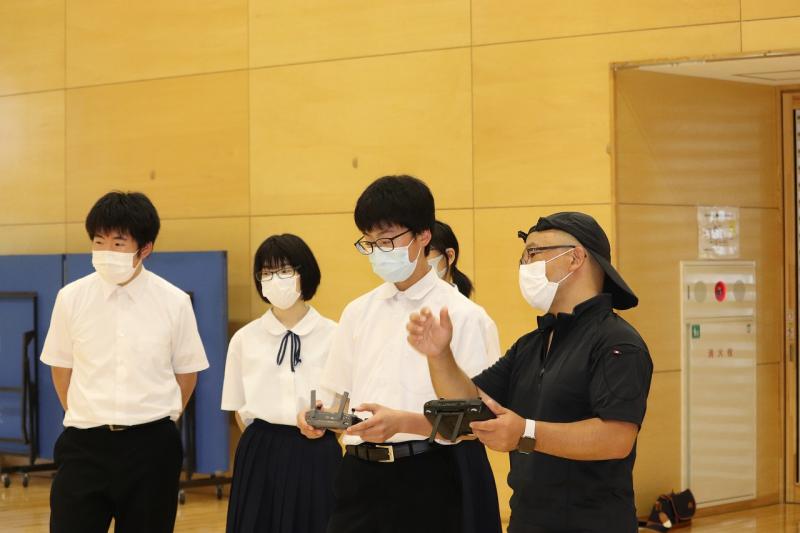7・8年生が総合的学習の時間に、浦様をお迎えして職業人講話を企画しました。子どもたちは、玄関で浦様をお迎えし、お茶でのおもてなしを行い、会場へご案内するなどの準備にもしっかり取り組む事ができていました。「空とあなたをつなぐお仕事~地域の魅力発信!郷土の宝を空から届ける~」と題して、珠洲の美しさを映像にして発信しておいでる様子をご紹介いただきました。ご講話が始まると、子どもたちは、映像の美しさと新しいことに挑戦されてきた取組に魅せられていきました。ドローンを使って実際に撮影された大谷の町の鮮やかな緑と輝く青い海が映し出されると、子どもたちからは歓声が漏れました。「里山里海の豊かな環境は人工的には再現できないOnly One。この環境だからできる事がたくさんあります。この豊かで恵まれた郷で生まれ育つ私たちには、自信をもって語れる故郷なのです」というメッセージは、子どもたちの心に響いていました。質問・感想コーナーでは、全員が積極的に思いを伝え、誰もやっていないからこそ広がる職業・世界があることについて考えることができた様子でした。その後、体育館で実際にドローン操縦体験を行いました。貴重な体験もさせていただき、本当にありがとうございました。