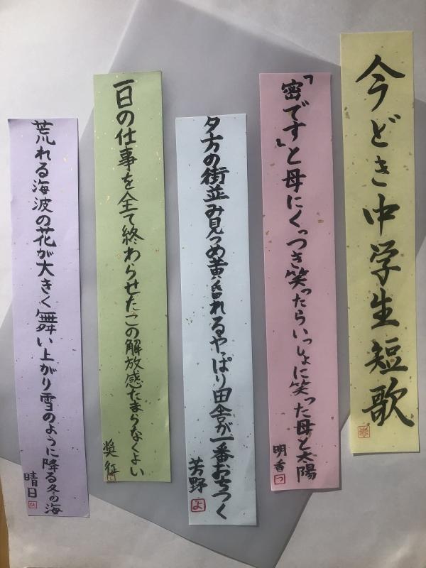 国語科の作品掲示「今どきの中学生短歌」・・・なかなか味があります。上手!