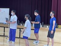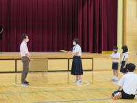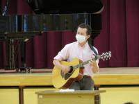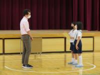 7月20日にエイデン先生の離任式を行いました。6年間、本校のALTとして外国語活動・英語の授業でお世話になりました。ギターを弾きながら楽しい授業をして頂きました。離任式では、みんなでゲームをしたあと、感謝の思いを伝えました。エイデン先生からは、歌のプレゼントがありました。「やさしさにつつまれたなら」の歌声が体育館に響き、その歌声の美しさと伝わってくる思いに感動しました。子どもたちは、真剣な大人の歌声とその様子を食い入るように見つめていました。忘れられない時間となったことと思います。エイデン先生、本当にありがとうございました。新天地でのご活躍をお祈りしています。