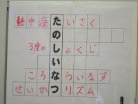 避難所で生活している子どもたちは、学校で過ごす時間も含め、24時間仲間と生活を共にしています。楽しいそうです。なぜなら一緒に遊ぶ時間が増えたからとのことです。確かに、ボランティアのお兄さんたちとおにごっこやかくれんぼをしています。外でも遊んでもらっています。夕食前の6時ごろ、子どもたちは、走ってはいけない廊下を笑顔で思い切り走り、しかられたりもしています。そんな中で、よりよい生活をめざして、避難所生活3か条をつくり、集会で披露してくれました。自治の力をつけていくきっかけとなりそうです。考え、行動し、呼びかける姿が大切です。