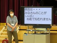 7月20日に、1学期の終業式を終えることができました。全員そろって行えたことに感謝したいと思います。夏休み中のことについて「よりよく」をめざして、3つのことをお願いしました。①自己教育力で、自分の生活をコントロールする ②危険予知力・危機回避能力を磨き、安心安全に過ごす ③心力を鍛える〈感謝する・思いやる・我慢する〉についてお話ししました。養護教諭からは、「たのしいなつ」になるように、お話がありました。生徒指導担当からは、パワーポイントで、「みなさんを守りたい」から注意してほしいことについて、子どもたちとのやりとりがありました。楽しい夏休みとなりますように。