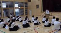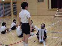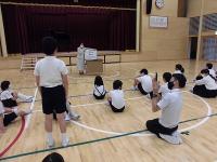 縄跳び集会を行いました。避難所となっている体育館にスペースを作っていただき、皆さんに見守られながらの集会となりました。地域のS平さんは、T谷さんに散髪してもらいながら子どもたちの縄跳びを観戦してくださいました。なかなか見られないシチェーションで、今しか出会えない光景も楽しみました。ボランティアの方々や金沢から来てくださった養護教諭のÝ先生も参加してくださり、みんなで楽しみました。八の字跳びに混ぜてもらったところ、美冬さんがそっと背中を押して入るタイミングを教えてくれました。やさしさがありがたかったです。