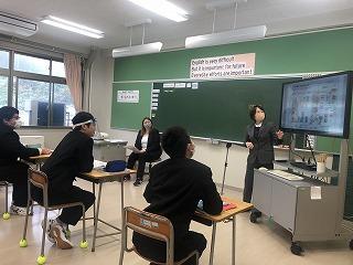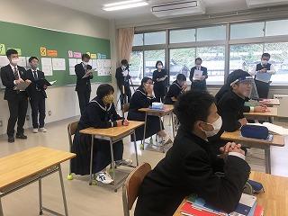 金沢大学準教授 加藤隆弘様 をお迎えして、校内研修会を行いました。9年生の英語の授業で「クラスメイトの大切な物・人について、新しい友達に紹介する」方法について学ぶ内容でした。ペアで和やかに学ぶ事が出来ていました。授業整理会では、加藤先生から他校の実践や英語のスピーチの映像等をもとに、ご助言をいただきました。今後、学校全体で、「伝える・聞く」を大切にして「声」にこだわっていくこととなりました。そのために教師の共通行動を明確にする必要が生じました。・・・翌日の職員朝礼で研究主任から具体的共通行動の提示が寸劇的に披露され、朝から笑いが起きました。子どもたちのよりよい学びのために職員全員でがんばります。