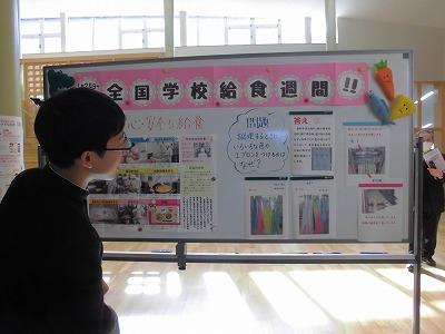 昭和の頃は、くじらの肉の竜田揚げ、ソフト麺のスパゲティなどが給食によく出る人気メニューでした。昭和40年頃から牛乳がつき、主食もパンからお米へと、時代ととも給食の献立が変化していきました。今日は、おいしくて栄養たっぷりで、安心・安全な給食を作ってくださる調理員の先生方のお仕事を紹介しました。作業別に色分けしたエプロンを付け替えるなど、様々な方法で衛生管理にとても気をつけながら調理してくださっていることに感謝しながらいただきました。