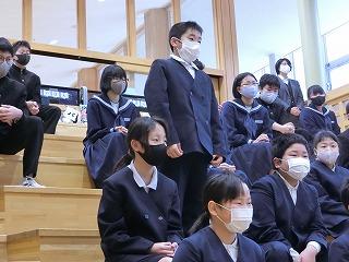 卒業式に向けて、8年生がリーダーとなって、後輩の指導をしています。全体に指示を出して、動かし、感想や改善点を伝えるなど、リーダーとしての風格が出てきました。いいコンビのふたりです。