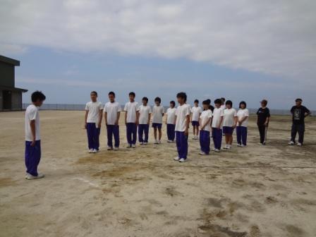 17:30…避難所の子どもたちが夕飯を待つ時間帯。集まって楽しそうに遊ぶことが恒例となっています。この日は、校舎内に子どもたの校歌の声が聞こえていました。校長室で保護者の方とお話をしていた時に、子どもたちの元気な校歌の声が聞こえてきて、思わず二人で笑顔になりました。何をしながらみんなで校歌を歌っていたのやら…「永久(とわ)に輝く 北斗星 漆黒照らすは 月明かり 風の香 かおる大谷に 生きる健児の 意気高し 夢と人の和誇らかに のびゆく学び舎 創りなむ」・・・胸に響きました。遠くなった海はこの日はきれいな青色でした。先週の青空の下での縄跳び練習の写真もご紹介いたします。