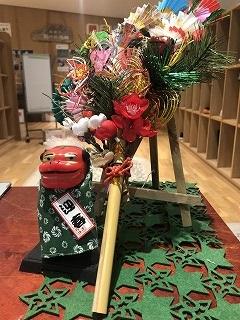 玄関に門松を飾ることができました。中嶋校務士が設置しました。玄関のウエルカムオブジェは二谷・打越調理員が作成・設置しました。