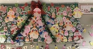 二谷調理員・打越調理員が12月の掲示やウエルカム作品を作成してくれました。今月はクリスマスに合わせて、イルミネーションもついています。カラフルで楽しい掲示となっています。来校者にも好評です。