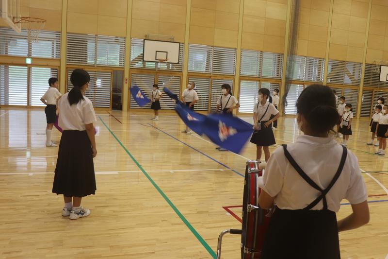 本日の朝、ブロック別集会を行いました。前期・中期ブロックは16日(木)の奥能登大会激励会の応援練習を行いました。選手が元気に試合にのぞめるように、5・6年生は、例年の激励会の内容にアイディアを4つプラスして取り組んでいます。入場曲をアカペラで歌ったり、扇子をもって三々七拍子を行ったりすることを楽しんでいました。「みんなが笑顔」の激励会となるように、明日も練習を行います。「旗を振って豆ができました~」「声を出してのどががらがらです」と言いながらがんばっています。