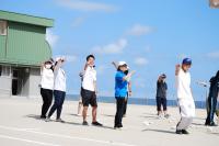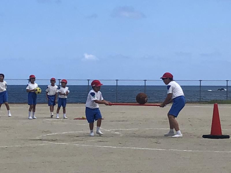 これまでの運動会の練習では、返事の声が明るく、行動に主体性があってとってものびのびとしていて楽しそうでした。空の青さと海の青さと子どもたちの表情が美しい運動会練習でした。当日が楽しみです。