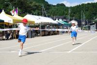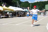 ①赤組・白組に分かれての応援合戦と、競技中の仲間への応援。(名前を呼んでの応援、団旗を振っての応援、大きな声が響いていました。競技に出場した子どもたちは全員、真剣にがんばっていました。いい笑顔がたくさんありました。)