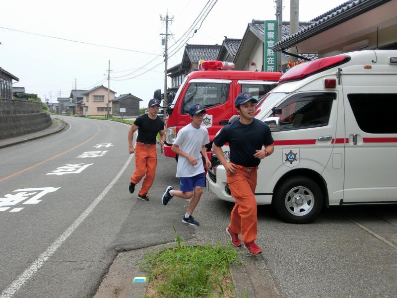 縄跳び集会を行いました。避難所となっている体育館にスペースを作っていただき、皆さんに見守られながらの集会となりました。地域のS平さんは、T谷さんに散髪してもらいながら子どもたちの縄跳びを観戦してくださいました。なかなか見られないシチェーションで、今しか出会えない光景も楽しみました。ボランティアの方々や金沢から来てくださった養護教諭のÝ先生も参加してくださり、みんなで楽しみました。八の字跳びに混ぜてもらったところ、美冬さんがそっと背中を押して入るタイミングを教えてくれました。やさしさがありがたかったです。