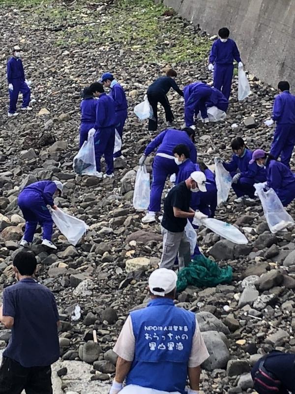 7月23日(木)に、自然共生室の宇都宮様と「おらっちゃの里山里海」の皆様のご協力を頂き、後期課程の生徒が海岸清掃を行いました。1時間余りの作業で、プラスチック61.8キロ、発砲スチール1.96キロ、金属9.57キロ、ガラス1.94キロ、有害物質7キロを回収しました。その後、宇都宮様から「世界とつながる大谷の海」と題してご講演いただきました。SDGsは、「経済」「社会」「環境」の3つのバランスをとることを目標としていること、太平洋ゴミベルト地帯の存在や海洋ゴミのことについてお話しいただき、自分たちができることについて話し合いました。子どもたちにとってふるさとの海を通して世界や社会に思いを馳せることができた一日となりました。お忙しい中ありがとうございました。