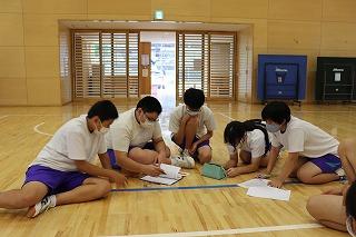 運動会の応援合戦に向けて、赤団・白団に分かれて作戦を考えました。先生方も団員としてアドバイスをしながら、身振り手振りでアイディアを出し合いました。当日が楽しみです。