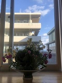 ストックのお花を頂きました。だんだん広場と教室に飾らせていただきました。被災環境の中にあって、きれいな花は日常を取り戻させてくれます。貴重な水をお花にも届けて、きれいに咲かせています。