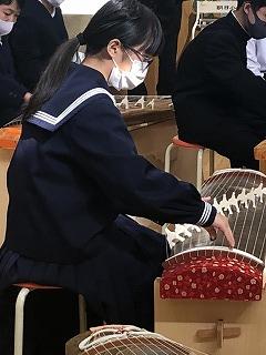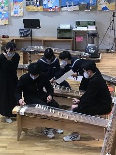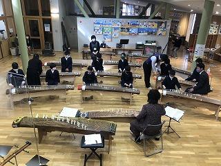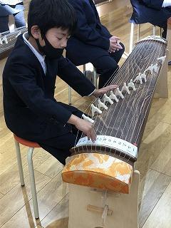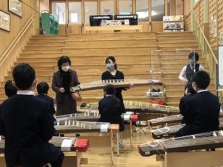 「文化芸術による子ども育成事業」を活用して箏体験を行いました。本日は、3ブロックに分かれて練習を行いました。明日、演奏会を実施いたします。新型コロナウイルス感染症予防対策のため、参観対象は保護者のみとなりますが、7・8年生とお箏の先生方とで「赤とんぼ」を演奏する予定です。