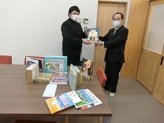 教弘石川支部様から本を寄贈していただきました。生徒会長の川端さんが「面白そうな本がたくさんあるので、読むのが楽しみです。」とお礼の言葉を述べました。たくさんの本をお届けいただき、本当にありがとうございました。