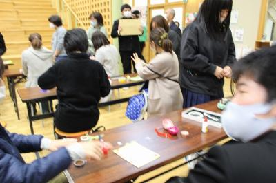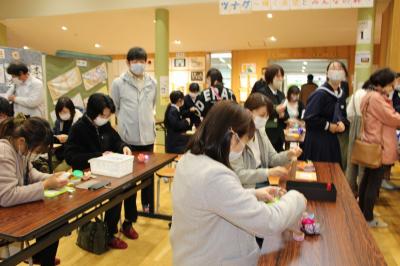 前期課程が計画していた「第3回人の輪プロジェクト」を行いました。今回は、後期課程とコラボした「大谷ガチャ 第2弾」の取組を行いました。まず最初に後期課程の生徒から、これまでのガチャの取組と、第2弾に向けたプロジェクトの説明がありました。そのあと、地域の方々と一緒に鯉のぼりをリメイクしたタッセルを作りました。とても楽しい時間でした。今回で、今学期の人の輪プロジェクトは終わりますが、来年度も地域の方々とつながる活動をしようと考えています。