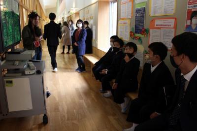 来年度の修学旅行は、宝立小中学校と三崎中学校と合同で行うことから、合同学習を行いました。修学旅行で仲良く行動し、楽しい思い出を作ることを目的に行いました。これまでの修学旅行に向けた各校の学びの発表やブレインストーミングなどを行い、互いのことを知り合うことができました。最後は円陣を組んで「みんなで楽しい修学旅行にしよう!」と気持ちを一つにすることができました。