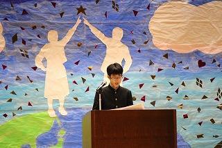 おかげさまで、本日文化祭を無事に終了することができました。本番一回にかける集中力とこれまでの練習の成果を発揮し、感動の一日となりました。今頃は、各家庭で本日のことを話題にしながら、心地よい疲れの中にあることと思います。つらいこと困難なことを乗り越えて輝くことができた一日だったと感じています。同時にみんなで創るすばらしさを味わったことと思います。スローガン「ツナグ~輝く希望とみんなの絆~」のもと、クラスメートとの絆、先輩・後輩との絆・保護者との絆・地域との絆の中で大成功した文化祭でした。速報として、午前の部の様子をご紹介します。