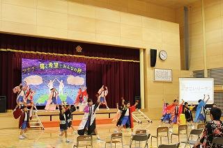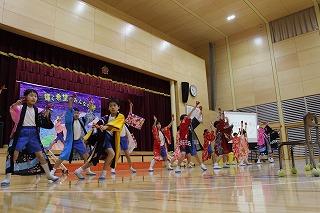 意見発表では、映像や図・資料をつかい、自分の考えを発表し、フロアからは保護者や子どもたちが感想を伝えてくれていました.。合唱では、1年から9年での全校合唱「ふるさと」の美しいハーモニーを披露できました。よさこいでは元気な掛け声とそろった動きが映えていました。そして、祭囃子では、幼いころから笛や太鼓に親しみ、体に染みついたリズムと迫力と掛け声で、たくさんの人を感動させていました。この後、今年度初めての取組「後期課程ブース」の活動となりましたが、後日お知らせいたします。