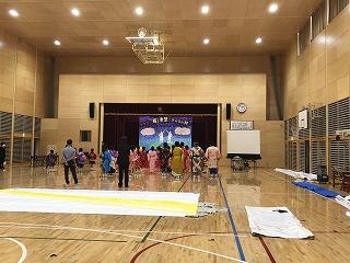 縄跳び集会を行いました。避難所となっている体育館にスペースを作っていただき、皆さんに見守られながらの集会となりました。地域のS平さんは、T谷さんに散髪してもらいながら子どもたちの縄跳びを観戦してくださいました。なかなか見られないシチェーションで、今しか出会えない光景も楽しみました。ボランティアの方々や金沢から来てくださった養護教諭のÝ先生も参加してくださり、みんなで楽しみました。八の字跳びに混ぜてもらったところ、美冬さんがそっと背中を押して入るタイミングを教えてくれました。やさしさがありがたかったです。