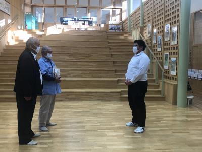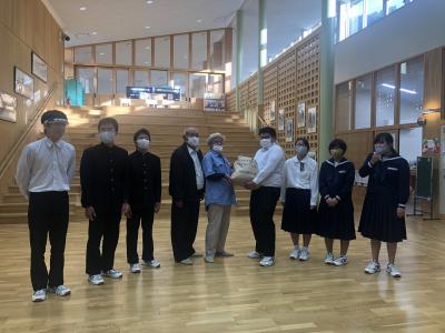 平家の里構想研究会の大兼政様と吉原様が、黒米を届けてくださいました。生徒を代表して9年生が受け取り、けんたろうさんが「自分たちも関わることができたお米なので、給食で味わっておいしくいただきます。」と挨拶しました。いつも学校や子どもたちのことを気にかけていただき、たくさんのご協力に心から感謝申し上げます。本当にありがとうございます。コロナ禍が収束に向かい、黒米を取り入れた給食試食会に皆様をご招待できますことを心から願っています。