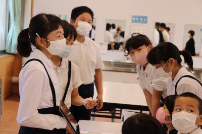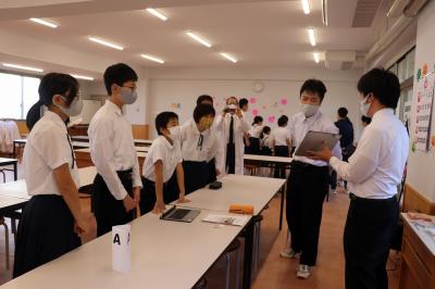 10月2日(金)の朝、5年生~8年生の子どもたちが、遠足の報告会を行いました。聞く方の前期ブロック・後期ブロックの生徒は、3つのグループに分かれて、タブレットで説明を行う場所へと移動し、報告を聞き、質問をしました。説明を行う方は、3回同じ説明をする中で、だんだん上手になり、アドリブを入れる余裕もできていました。繰り返し発話する中で、表現する力は鍛えられていくものですね。
