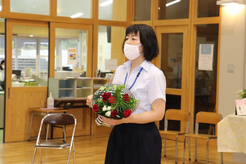 2年生・3年生・4年生に国語や図工を教えてくださっていた庄司先生が本日で勤務を終了されました。お別れの会では、ひろとさんが「今までをありがとうございました。図工の授業がおもしろかったです。」とお礼の言葉を述べ、みふゆさんが花束贈呈を行いました。庄司先生は、「今まで数学や英語も好きだったけれど、海外にたくさんでかける中で、「食」の大切さに気付き、これからは「食」について大学で勉強します。勉強は嫌いな人が多いかもしれないけれど、勉強したことは自分を助けてくれます。だから、たくさん勉強してください。」とご挨拶されました。いつも笑顔で元気な声で授業をしてくださいました。エネルギッシュで様々なことに挑戦される姿に学ぶことがたくさんありました。庄司先生、本当にありがとうございました。