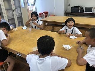 本日、昼食のデザートとして、ボランティアの方々からフルーツポンチやたいやきをいただきました。たいやきにはホイップクリームやトッピングの準備もしていただき、子どもたちは「別腹」といって、堪能していました。余ったホイップクリームをたくさんかけてもらいながら、大満足の様子の子どもたちでした。楽しい時間となりました。教職員もおいしくいただきました。本当にありがとうございました。