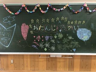 1・2年生教室の黒板にお誕生日メッセージが書かれていました。カルピスシャーベットでみんなでお祝いをしました。