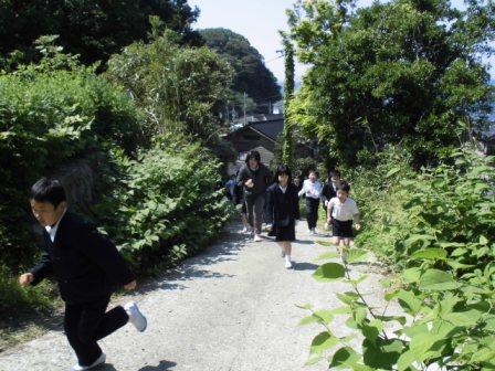 今回は、津波の一次避難場所となっている高山まで走って避難しました。